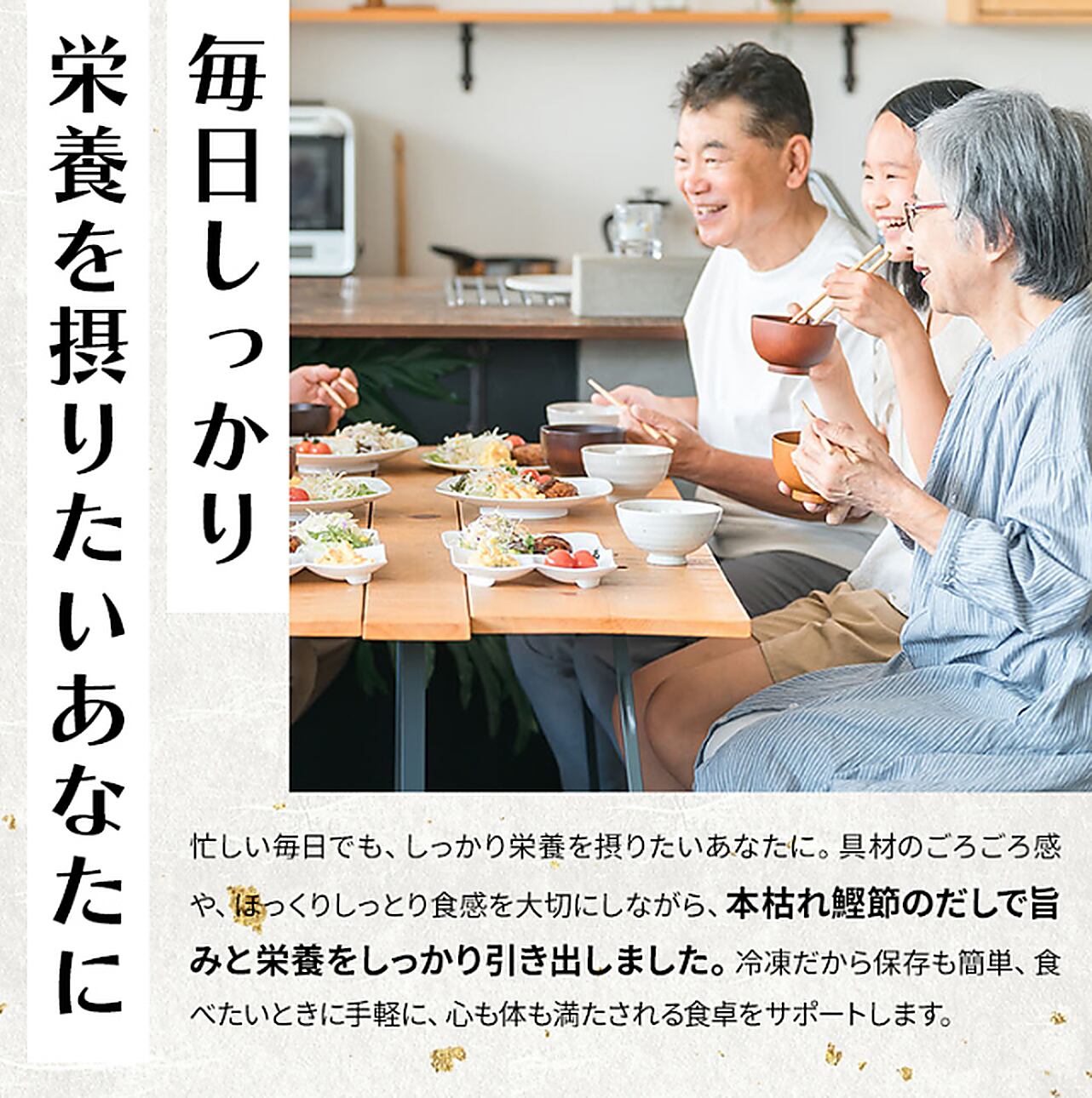 香り高い本枯れ鰹節から丁寧に取った出汁を使用し、じっくり煮込むことで、キャベツの甘みと肉の旨みが調和した奥深い味わいに仕上げました。口に入れた瞬間、出汁の香りとともに、じゅわっと広がる旨みが特長です。キャベツはやわらかく煮崩れしにくい絶妙な食感、具材はふんわりジューシー。まるで手作りのような、やさしい味わいと食べ応えをお楽しみいただけます。