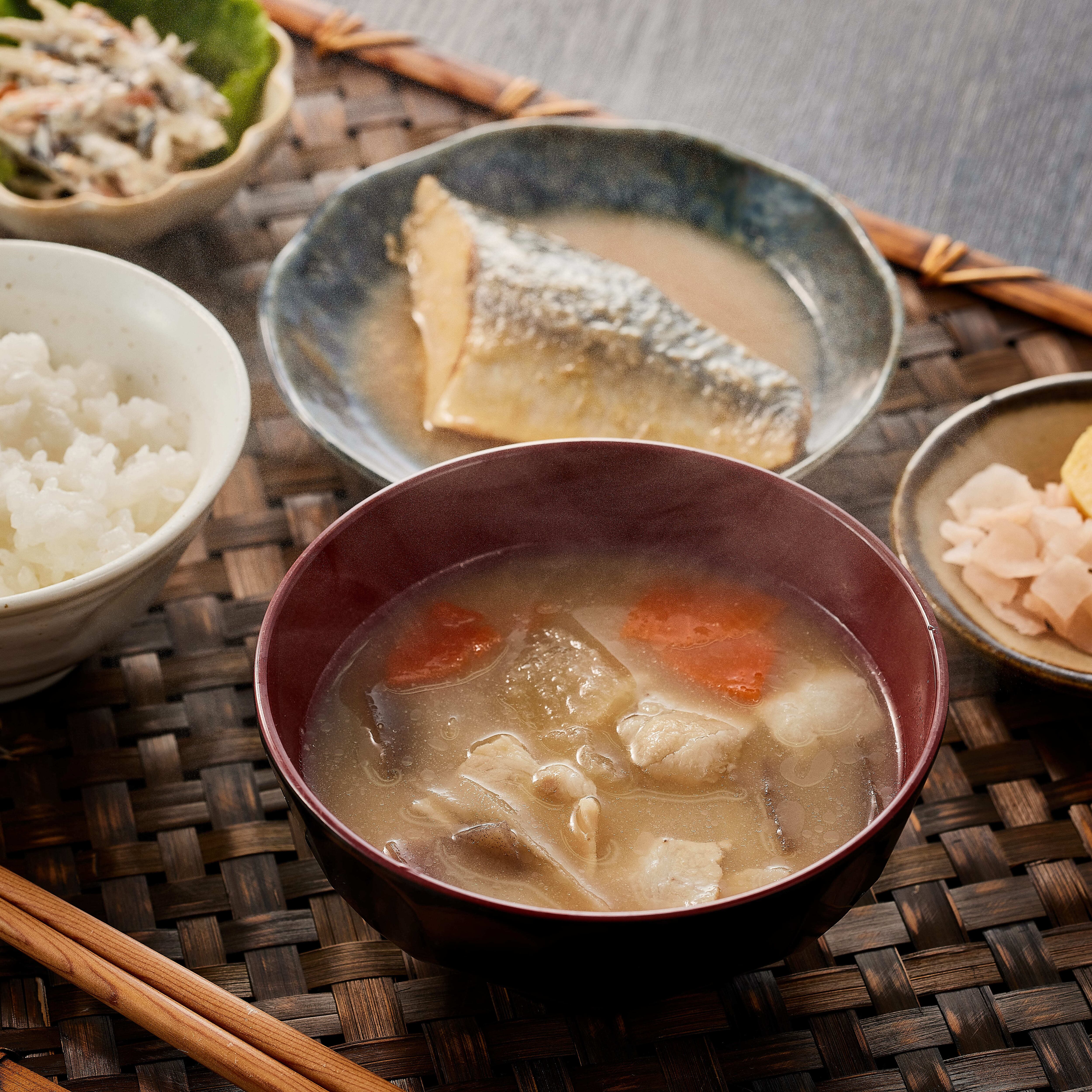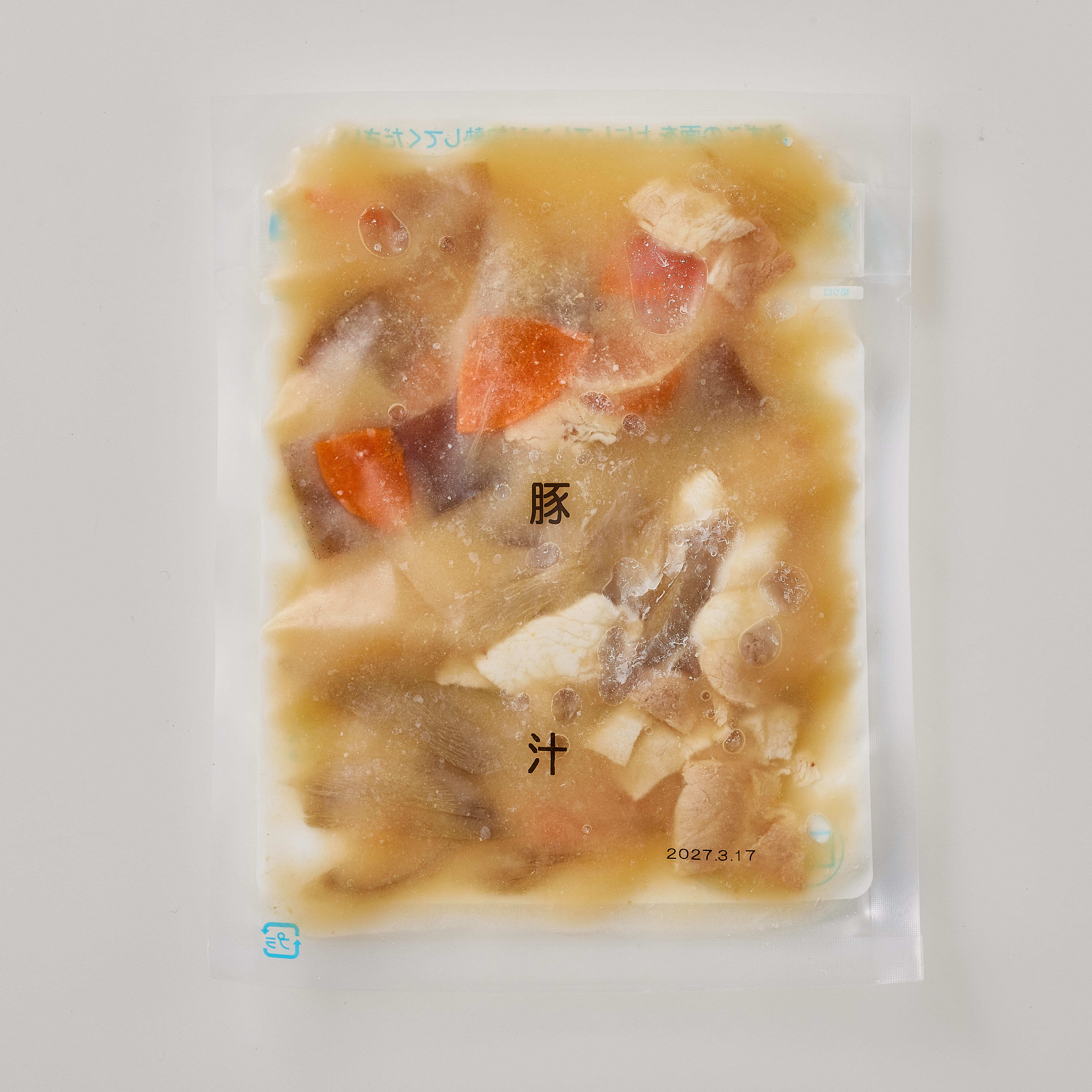 豚肉とたっぷりの野菜を使用し、本枯れ鰹節と味噌の風味がしっかり効いた、具だくさんの本格豚汁。豚肉はやわらかくジューシー、野菜は煮崩れせず素材の食感を残した仕上がり。出汁と味噌の旨みが調和し、体に染み渡るような味わいが楽しめます。冷凍のまま温めるだけで、手間なく本格的な味噌汁が食卓に。忙しい日にもぴったりの一品です。